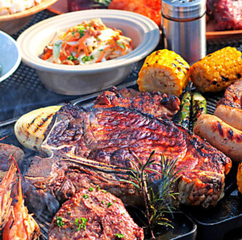 予約制満席セット熊本あか牛ステーキ/スペアリブ/お肉詰め合わせセット/季節の野菜サラダ/海鮮2種/野菜盛り/阿蘇豚ソーセージとチョリソー/海老とブロッコリーのアヒージョ&バケット/本日の前菜3種/唐揚げ&フライドポテト/本日のピザ/おすすめデザート