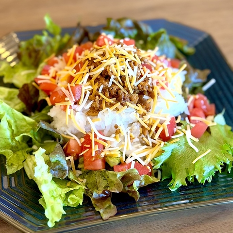 しっかりと味のついたタコミートを、たっぷりのレタスとサイコロ状のトマトでさっぱりとお召し上がりいただけます。※ご飯は180gです。