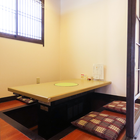 心地よい和の空間が広がる掘りごたつ。落ち着いた雰囲気の中で、友人やご家族と心温まるひとときをお過ごしください。