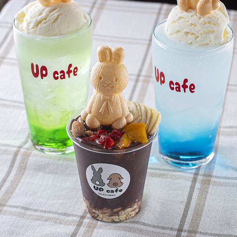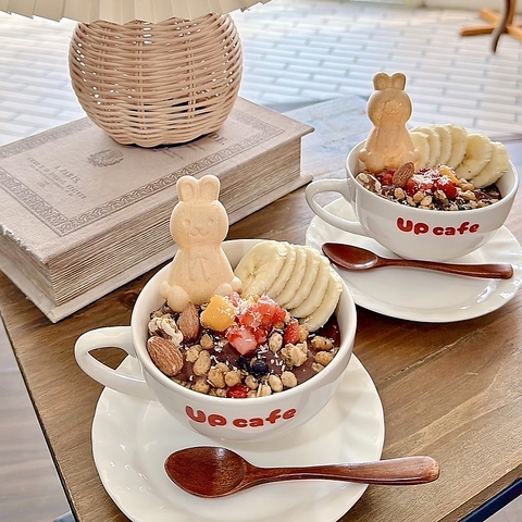 ふわっふわで見た目もかわいい大人気の”うさちゃんパンケーキ”やかわいい見た目のパフェなど豊富なスイーツをご用意しております◎流行りのアサイーをふんだんに使用した”ウサイーボウル”も見逃せないっ!美味しいことはもちろん、かわいい見た目にも癒されるUPcafe自慢の絶品スイーツをぜひお楽しみください♪