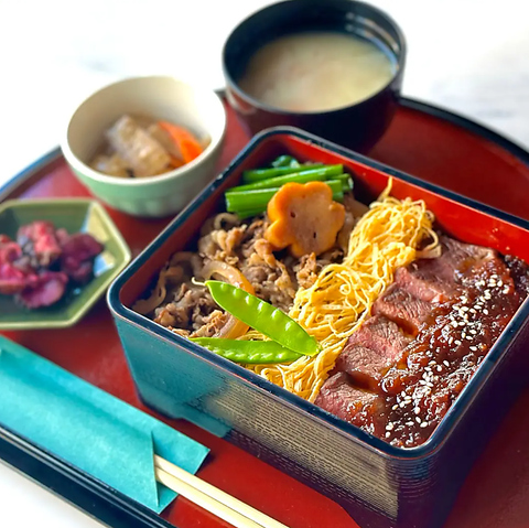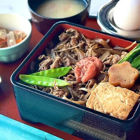 全てのメニューに味噌汁/季節の小鉢/漬物が付いております。ボリューム満点の牛めしやお重ランチをご用意しております。贅沢なお昼ごはんで、午後のやる気をチャージしましょう!ぜひお気軽にご来店くださいませ。