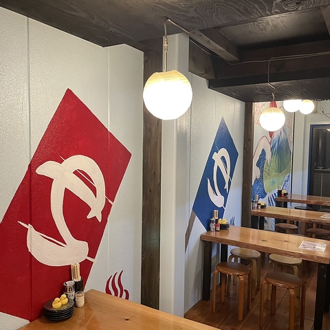 お店に入ると銭湯の富士山をイメージした壁画がお出迎え♪お風呂が先か、ごはんが先かどちらも同時に楽しめる「遊び場」をコンセプトにほっこりできる居酒屋です♪