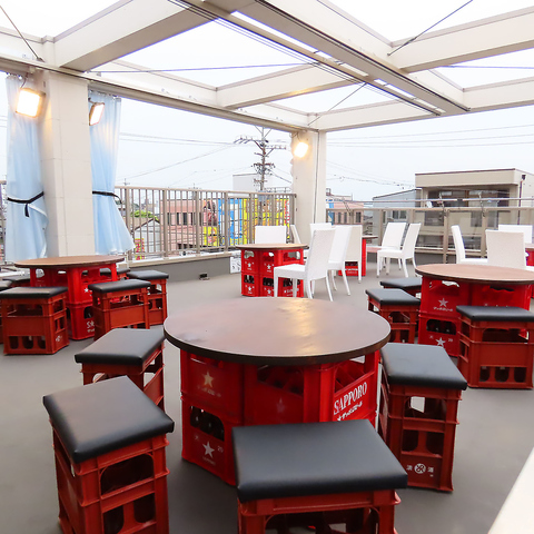 爽快な風を感じられるテラス席を確保。野外でのBBQ感覚で美味しい焼肉を楽しめます。友人や家族とワイワイ盛り上がりましょう。