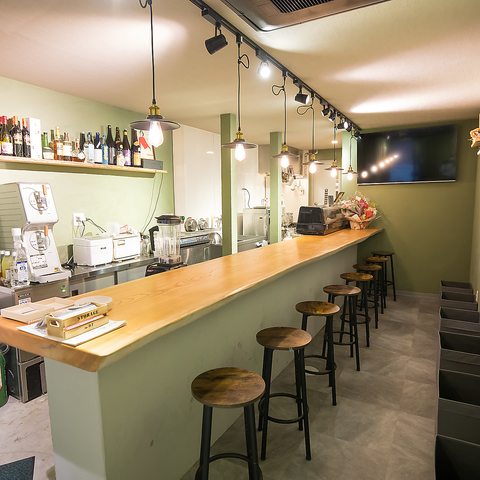 【居心地の良さにこだわった店内】カウンター席8席、4人掛けテーブル席と店内はこじんまりしていますが、落ち着いたインテリアでまとめた店内は居心地が良くリラックスできる空間。女子会やデートはもちろん、仕事帰りのちょい飲みにおすすめです。