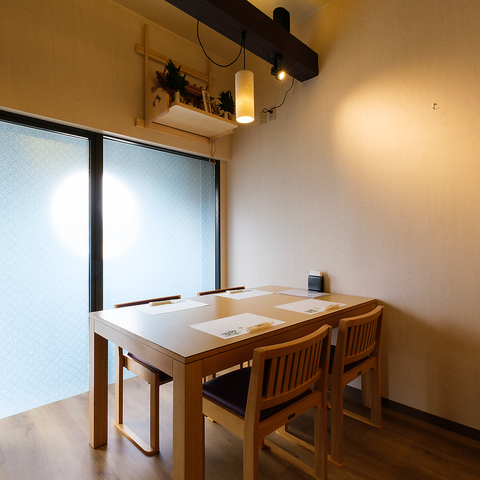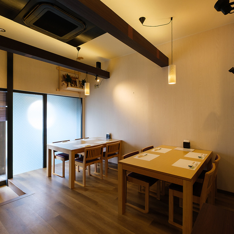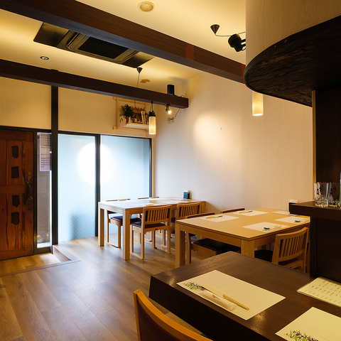 テーブル席は4名掛け×2卓完備。ちょっとした飲み会から小さなお子様をお連れのお食事など、多彩なシーンでご利用いただけます。椅子を追加して最大10名様までご利用いただけるので、団体様のご宴会や親子3世代にわたるご家族のお集りなどの際にも◎敷居を感じずカジュアルに、本格的なお料理をお楽しみいただけます♪