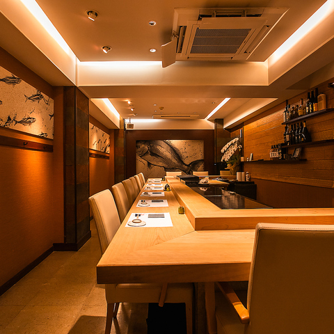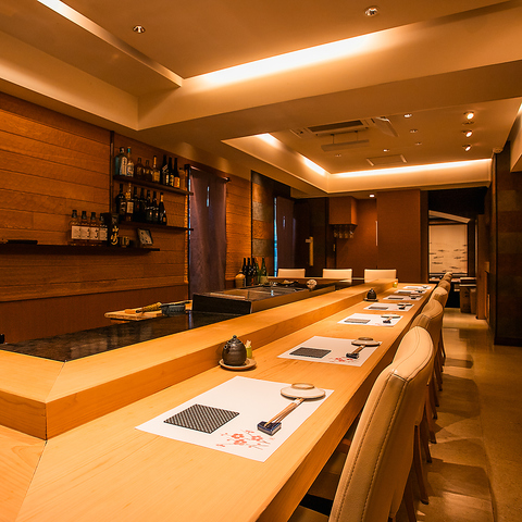 落ち着いた雰囲気の中で、会話を楽しみながら食事ができる空間が魅力です。カウンター席では職人の技を間近で感じられ、特別なひとときを演出します。記念日や大切な人との食事にも最適です