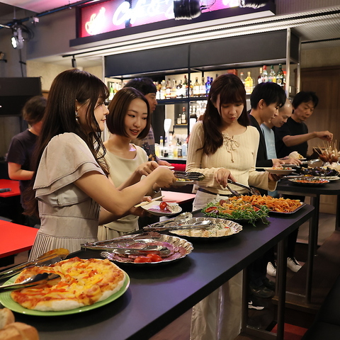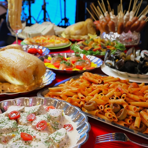 乾杯の後はブッフェ台へ!好きなものを好きなだけ、少しずつ。お皿が彩りで満ちるたび、会話のネタも増える。ブッフェの醍醐味がここに。写真映えと満足感を両立。気取らずワイワイ楽しめるパーティ仕様です。ブッフェの内容やご要望もお気軽にご相談ください!素敵なパーティをサポートさせていただきます♪
