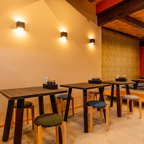 カジュアルにご利用いただけるテーブル席もございます。4名テーブル・2名テーブルと人数に合わせてご利用いただけるので、多彩なシーンでご利用いただけます!古民家を改装した店内は、当時の梁や落ち着いた雰囲気を残しながらも清潔感溢れる空間。地域のお客様はもちろん、旅行・観光の際にも歴史を感じられる内装です◎