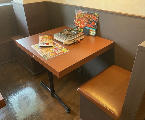 5名様~6名様の広々したテーブル席ですコンロ2台なので、2種類の辛さを選べるのも◎