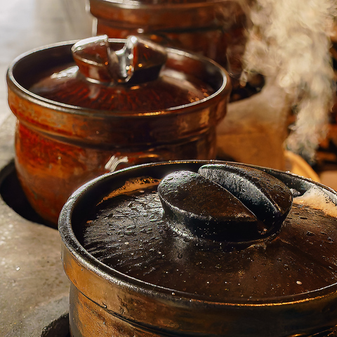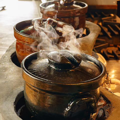 釜で炊き上げたご飯は、選りすぐりの米と新鮮な具材を使用し、じっくりと火を入れることで、素材の旨味を引き出します。蓋を開けた瞬間に香りが広がり、心温まる逸品です。お米本来の旨味を楽しみたい方は銀シャリ1098円(税込)~を、具材とのハーモニーを楽しみたい方は名物かしわ土鍋飯1648円(税込)~をご賞味ください!