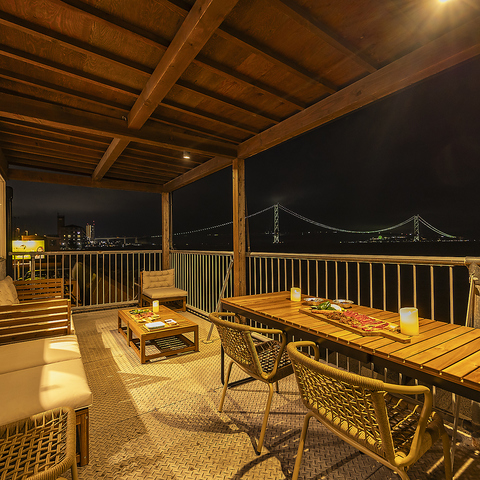 明石海峡を望む絶景のVIPテラスにはくつろげるソファー席も完備。ゆったりと贅沢な時間をお過ごしいただけます!