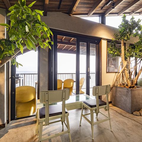 【テラス席】海を眺めながら、特別なひとときをお楽しみいただけるテラス席。ご家族でのお食事やデート、気の合う仲間とのBBQにぴったりの空間です。CAFEも営業しているので、ドリンクやデザートもご用意しております。潮風を感じながら、ゆったりとした時間をお過ごしください。
