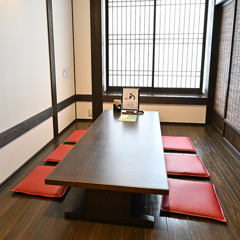 6名様の掘りごたつの座敷席です。足を伸ばして寛げる広々空間。ご家族やご宴会に最適です