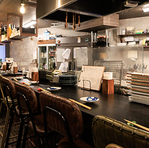 【草津駅徒歩4分の好立地◎】仕事帰りのお一人様も寄りやすい!当店はカウンター席20席と豊富にご用意しており、モダンな雰囲気の中でリラックスした時間をお過ごしいただけます。お仕事帰りの方でも気軽に立ち寄れる場所で、またデートにも最適です。カウンター席は、料理人が調理する風景を間近で楽しめるお席です。
