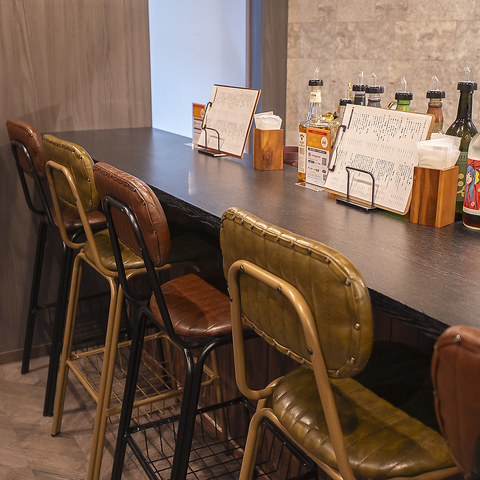 落ち着いた雰囲気のカウンター席は、お一人様のご利用はもちろん、デートにも最適なお席で、ゆっくりとくつろげます。