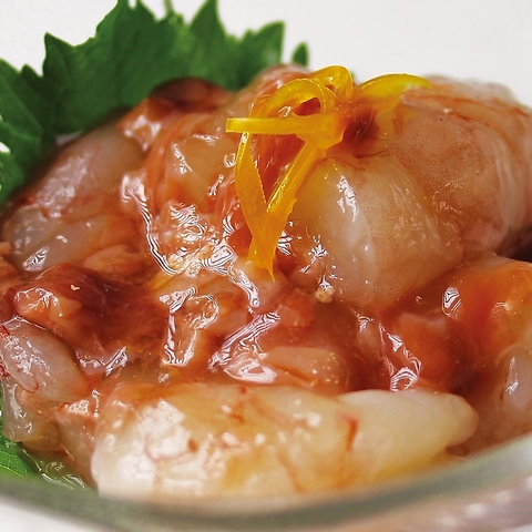 引き立つ意外な組み合わせ/酒盗のコクと塩気がエビの甘味と絶妙にマッチ。