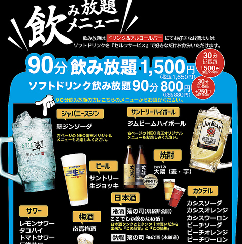 駅ナカ酒場NEO海王 飲み放題メニュー