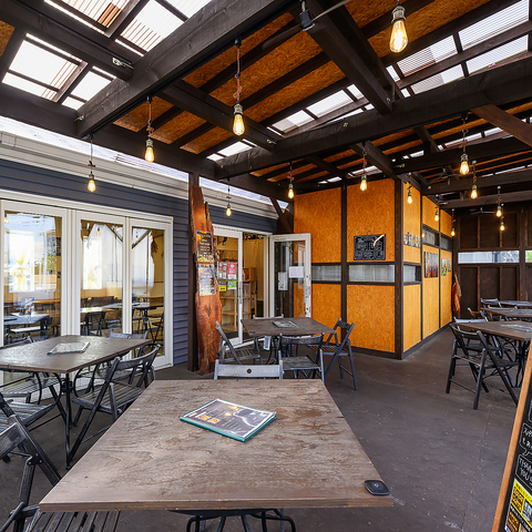 【人気のテラス席】解放感抜群のテラス席は、黒を基調に木目の温かみあるテーブルと椅子がございます。夜は明るい照明がオシャレ空間を演出!女子会やママ友会に最適です!夏は吹き抜ける風を堪能でき、気分はビアガーデン♪冬は暖房/風よけ/ストーブがあるので寒くありません!ペットの同伴が可能なので、お散歩ついでに◎