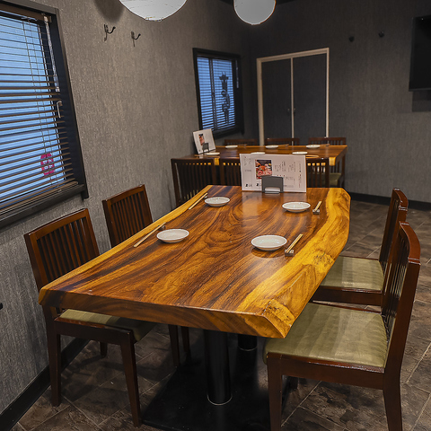 4名掛けと6名掛けのテーブルがあり、ゆったりとしたスペースで心地よい時間を過ごせます。友人や家族との楽しい会話を楽しむのに最適な場所です。宴会利用にも対応しており、特別なひとときを演出します。温かいおもてなしと共に、皆様のお越しをお待ちしています。