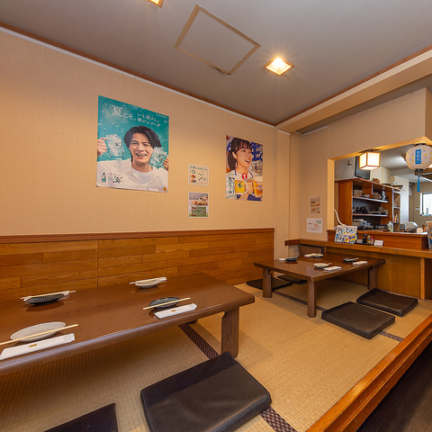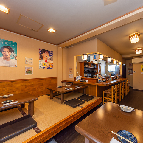 過ごしやすいお座敷席は、4名様掛けを3卓ご用意しております◎お仕事帰りの軽い一杯やご友人とのカジュアルなお食事の場としてお気軽にお立ち寄りくださいませ。おひとり様でお越しの際も、自分のペースでお酒や料理を楽しめるカウンター席をご用意しております♪