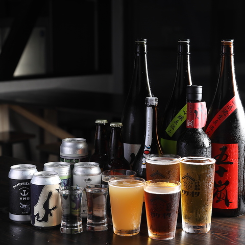 日本酒は常時50種類以上、クラフトビールは8つのタップに100種類を超えるボトルメニューの圧巻の品揃え。