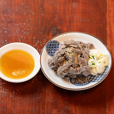 鮮度に徹底的にこだわった豚ホルモンの刺身で、コブクロ・ハツ・センマイの3種類を楽しめます。コブクロは歯ごたえのある食感を特製のピリ辛ダレで、ハツはあっさりとした旨みを引き立てる生姜醤油で、センマイはシャキシャキ感とともに塩と胡麻油でさっぱりと味わえます。