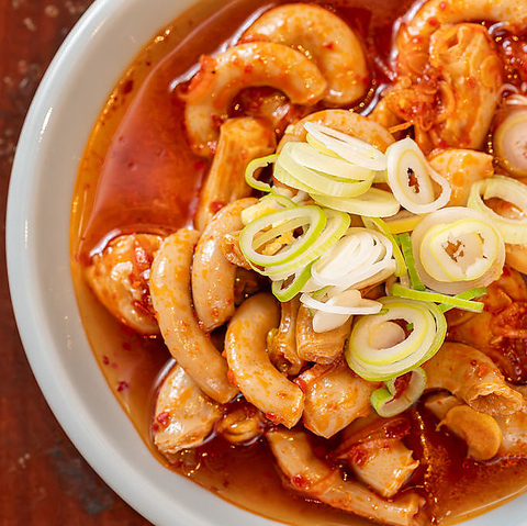 鮮度抜群の豚ホルモンを使用した当店の人気料理でニンニクの効いたピリ辛味噌のホルモンミックス。ぷりぷりとした食感と香ばしい風味が食欲をそそり、お酒との相性も抜群です。