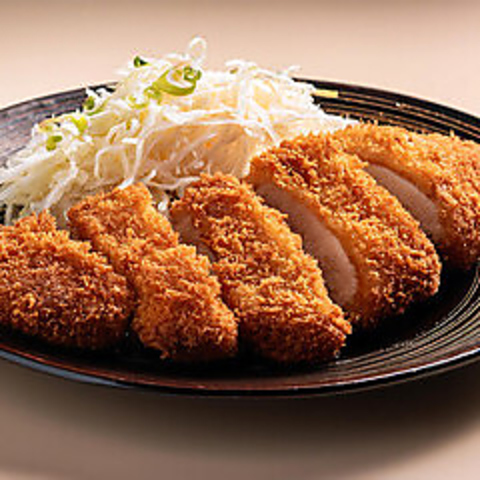 鹿児島県産茶美豚の厚切りカツは、外はカリッと、中はジューシー!肉の旨味を存分に味わえる一品!和からしやソース、おろしポン酢、岩塩での味変が楽しめ、あなたの好みにアレンジ可能。ごはんや具だくさんの豚汁、とろろ芋、漬物が付いて、心もお腹も満たされること間違いなし!