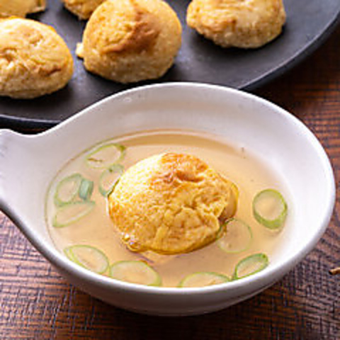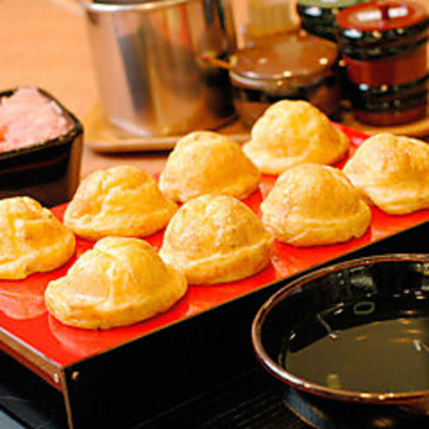 こぶだしとかつおのダブルだしを使用している福岡では珍しいだしを効かせた明石焼きです。15個・20個入りの定食もご用意もございます。詳しくは料理ページをご覧ください。