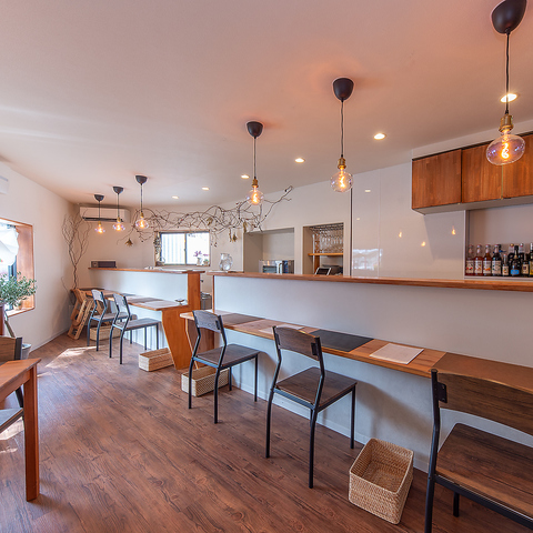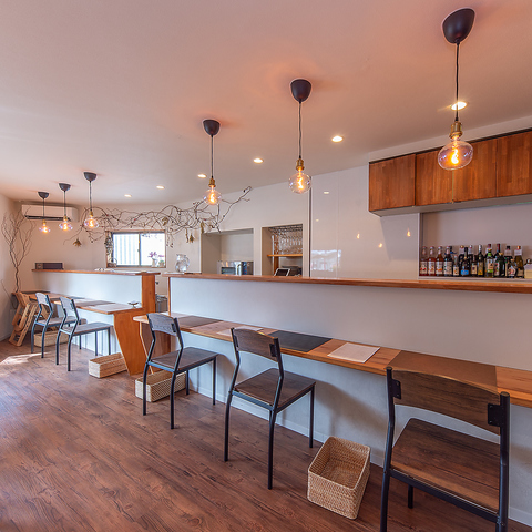 カウンター席はカフェタイムや軽く一杯楽しむサク飲みに最適な空間です。落ち着いた雰囲気の中で、心地よい時間を過ごせるよう素敵なインテリアを取り入れています。肩ひじを張らずにリラックスできる環境を大切にしておりますので、お一人様でも気軽にお越しただけます。