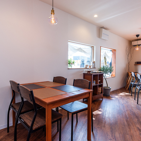 当店のテーブル席は、オシャレで肩ひじ張らない安らげる空間です。ママ友や女子会のご利用にも最適なお席です。