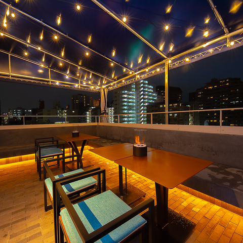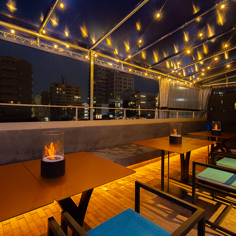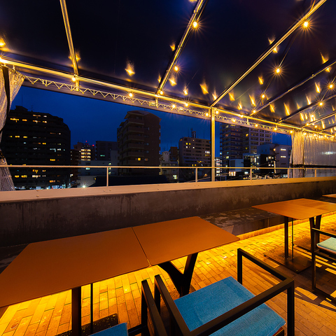 当店のテラス席は2名様用が6卓あり、開放感抜群の空間でお食事をお楽しみいただけるので、夜景を眺めながらのBBQにもピッタリです◎日焼けを気にすることなくお楽しみいただけるのも嬉しいポイント♪デートやご友人とのお集まりにも最適なお席となっております◎