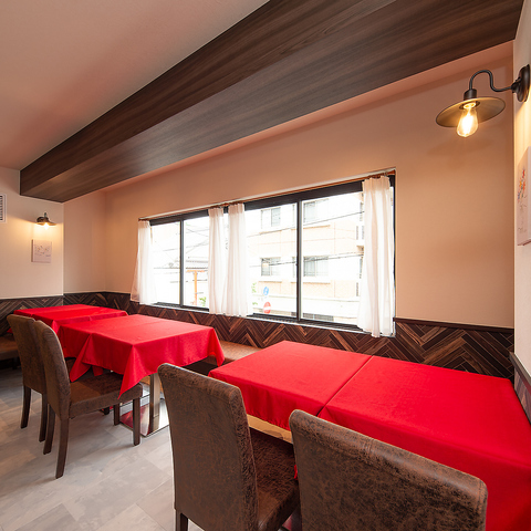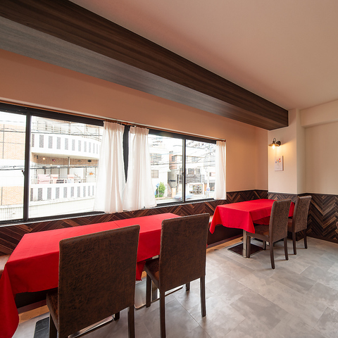 広い窓が開放的なテーブル席は、4名掛けを3卓ご用意♪テーブル同士をつなげて最大14名様でご利用いただくことも可能で、大人数でのお食事にはコースがおすすめです!堅苦しい雰囲気ではないので、肩肘張らずにカジュアルにお楽しみください♪