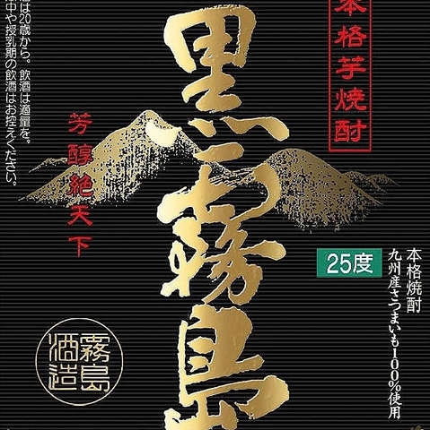 | 焼酎 | 黒霧島 [芋]/さつま島美人 [芋]/木挽きブルー [芋]/白岳しろ [米]/いいちこ [麦]/雲海 [そば]/れんと [黒糖]/紅乙女 [ごま]/鍛高譚 [しそ] ※飲み方をお申し付けください。[ロック・水割り・お湯割り・ソーダ割り] |