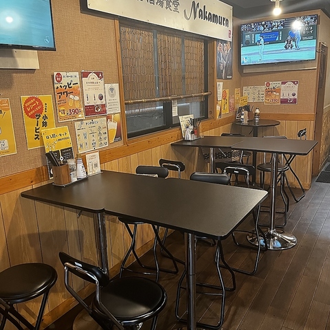 丸テーブルを2卓ご用意。少人数での会社帰りのサク飲みに最適で、気軽に立ち寄れる雰囲気が魅力です。美味しい料理と共に、リラックスした時間を楽しむことができます。仕事の後のひとときを、ぜひこちらでお過ごしください。