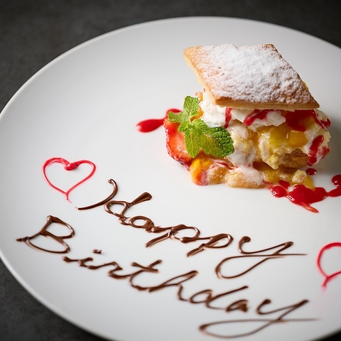 【誕生日・記念日にぴったりな料理とおもてなし♪】コースのデザートは追加料金なしでお祝い用のプレートに変更OK!一度来たら忘れられない、特別な日の思い出作りにふさわしいお店です。