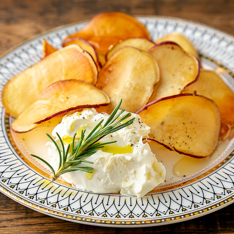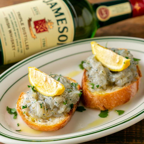 ガーリックオイル香るバケットに、鮮度にこだわった生シラスをたっぷりトッピング!お好みでレモンを絞れば、さらにさっぱりとした味わいに。白ワインとの相性も抜群で、お料理の合間の箸休めにもぴったり♪食事の流れにちょっとしたアクセントを加えてくれる一品です!