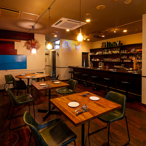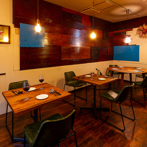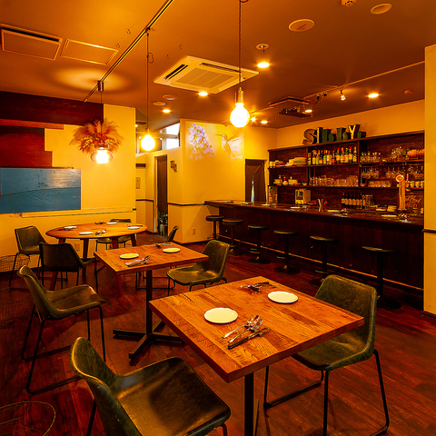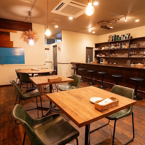 おしゃれな店内は、まるで隠れ家のような居心地の良さ。カウンターでしっぽり飲むも良し、テーブル席で気の合う仲間と語らうも良し。落ち着いた照明と開放感ある空間は、デートや2軒目利用はもちろん、女子会や気軽な集まりにもぴったりです。時間を忘れてくつろげます!
