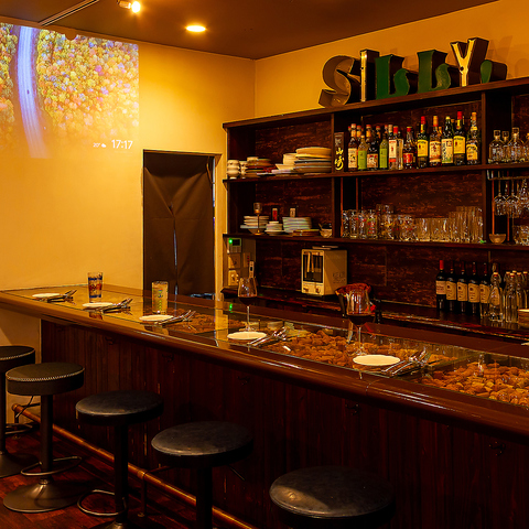 カウンター全6席。お一人様でもふらっと立ち寄りやすく、落ち着いた雰囲気の中でゆったりとした時間が過ごせます。目の前にはグラスやボトルが美しく並び、ちょっとした食事から1杯だけの利用まで自由自在。程よい距離感が心地よく、デートや大人の一人飲みにもぴったり◎静かに過ごしたい夜に、特別なひとときをどうぞ♪