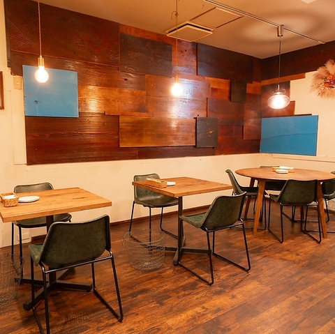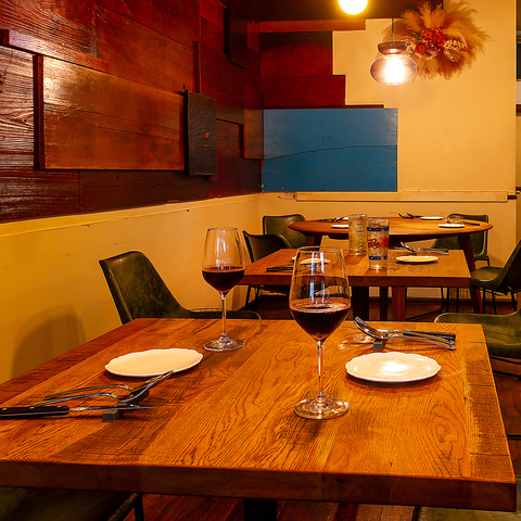 2名掛け×2卓に加え、みんなで囲める4名用の円卓もご用意♪気軽な女子会や仲間との集まりにぴったりで、会話が弾むこと間違いなし!落ち着いた照明と心地よい空間は、ワイワイ楽しみたい夜にも、大人のくつろぎ時間にも◎ゆったりとした時間を過ごせる、居心地抜群のひとときをぜひ。