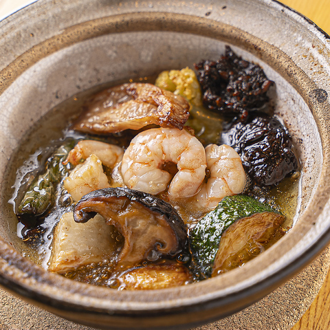 西京みそもつ煮350円(税込)や海鮮と野菜のアヒージョ800円(税込)、季節の焼き野菜650円(税込)などお酒と相性の良い一品料理も数多くございます。