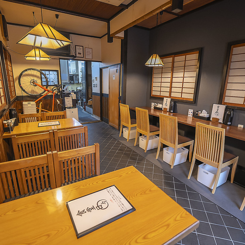 障子風の装飾や木目調のインテリアが印象的な店内は、心がほぐれるような落ち着いた空間。お一人の利用も◎