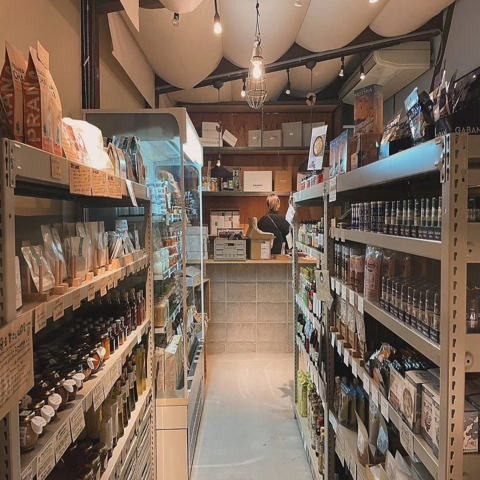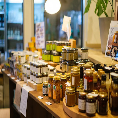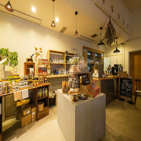 ナチュラルな雰囲気が漂う空間づくりが魅力です。木材を基調としたインテリアで居心地の良い空間を提供しています。商品棚には厳選された食品やドリンクが並び、商品を選ぶ時間も一層楽しくお過ごしただけるよう綺麗な陳列を心がけております。ご自宅用やギフトにもぜひご利用ください。