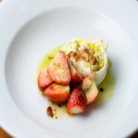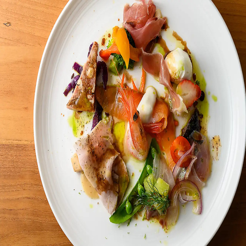 地元の旬な食材を取り入れた料理を提供しております。イタリアの伝統を大切にしながら、地域の魅力も感じられるメニューを展開しています。magazzinoのブッラータチーズサラダは、自社工房で作られた新鮮なチーズを使用しております。