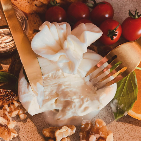 金沢の牧場で採れた新鮮な牛乳を使用し、自社工房で作る「ブッラータチーズ」はミルキーでもちもち食感♪