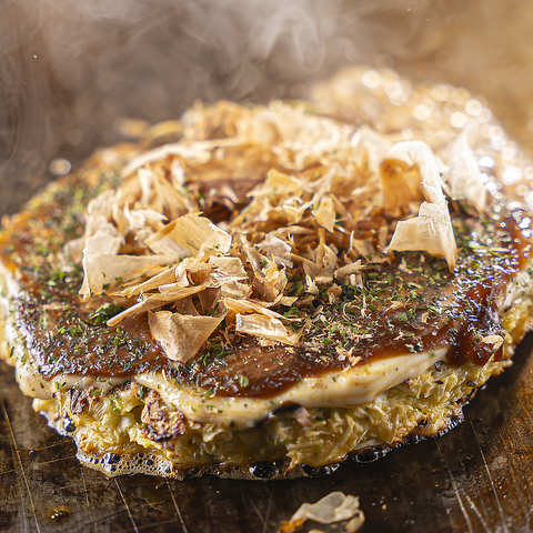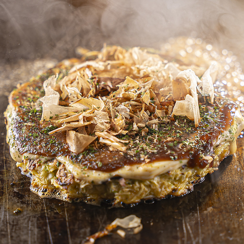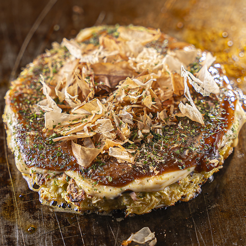お好み焼きややきそばを始め、豊富な一品料理などご用意しております!名店「日好いち」の美味しさをそのまま引き継いだお好み焼きをご提供☆風味豊かなふわふわの生地が自慢で、豚玉やイカ玉、すじコン玉、ネギ豚玉など、種類も豊富にございます。是非一度ご賞味ください!