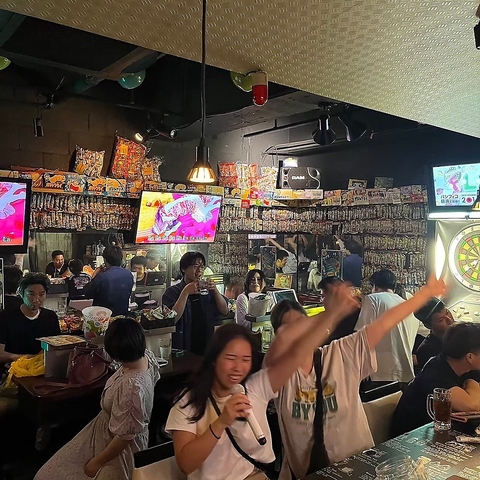 当店は10名様からの貸切利用も可能!駄菓子とお酒と共に、ダーツやカラオケで宴会を盛り上げましょう♪