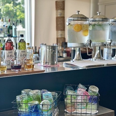 フリードリンクにはデトックスウォーターやハーブウォーター、ビネガー、紅茶ビュッフェをご提供してます☆
