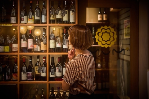 当店はワインの種類が豊富!ワインショップ併設で、他レストランで飲むよりもお手頃価格でお楽しみいただけることも魅力の一つ。店内には、産地や味わいが様々なワインがずらっと並ぶワインセラーがございます!簡単なワインの説明書きもついているため、ぜひ好みに合うワインを、ご自身でセレクトしてみてください♪