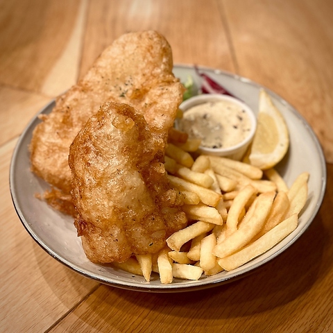 特製の衣でカリッと揚げた大きな白身魚とポテトフライの2種盛りです。~タルタルソース添え~